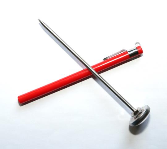 Thermomètre en inox de 14cm avec manchon de protection.
